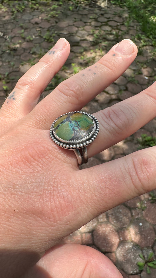 FIONA RING // Sterling Silver Round Green Turquoise Ring (Size 9.75)